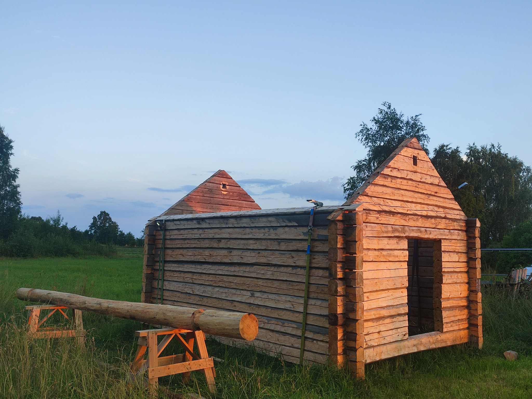 Av mig nytimrad handbilad timmerstomme på 15 kvadrat. Nedplockat och färdigställt.