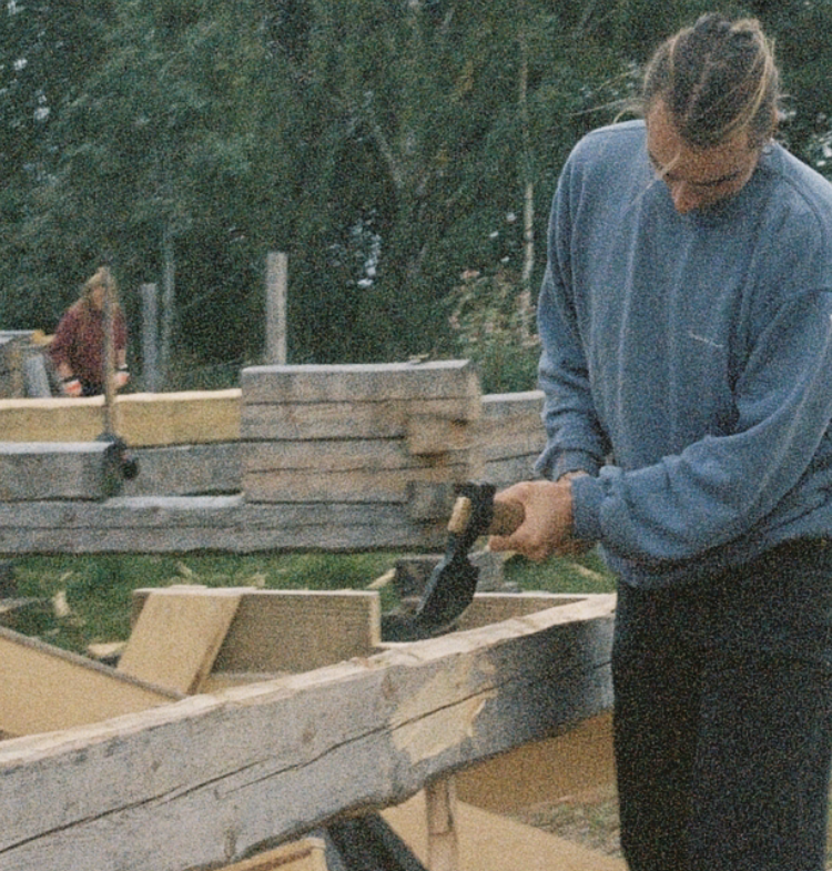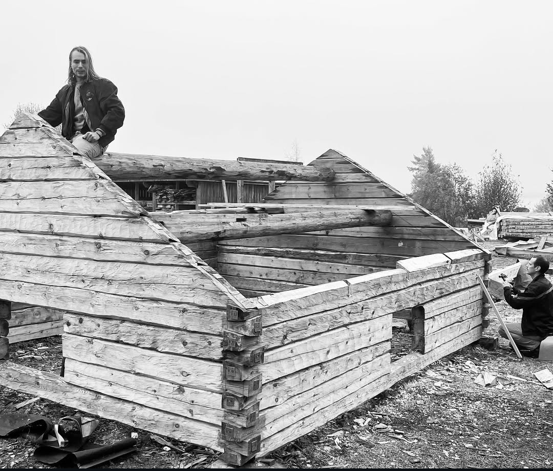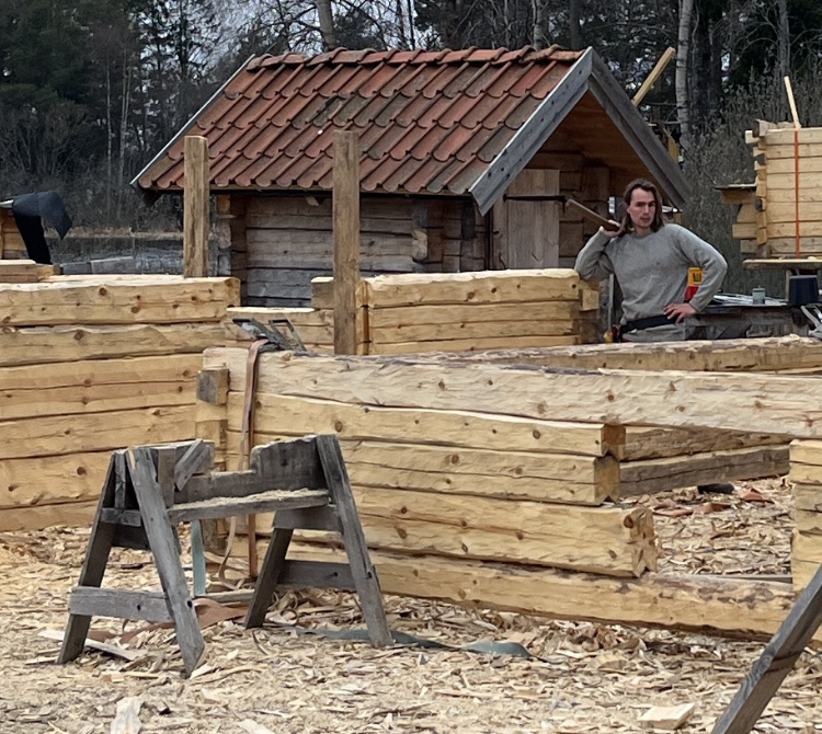 Skapa traditionella handbilade timmerhus timrade med endast handverktyg och motorsåg.