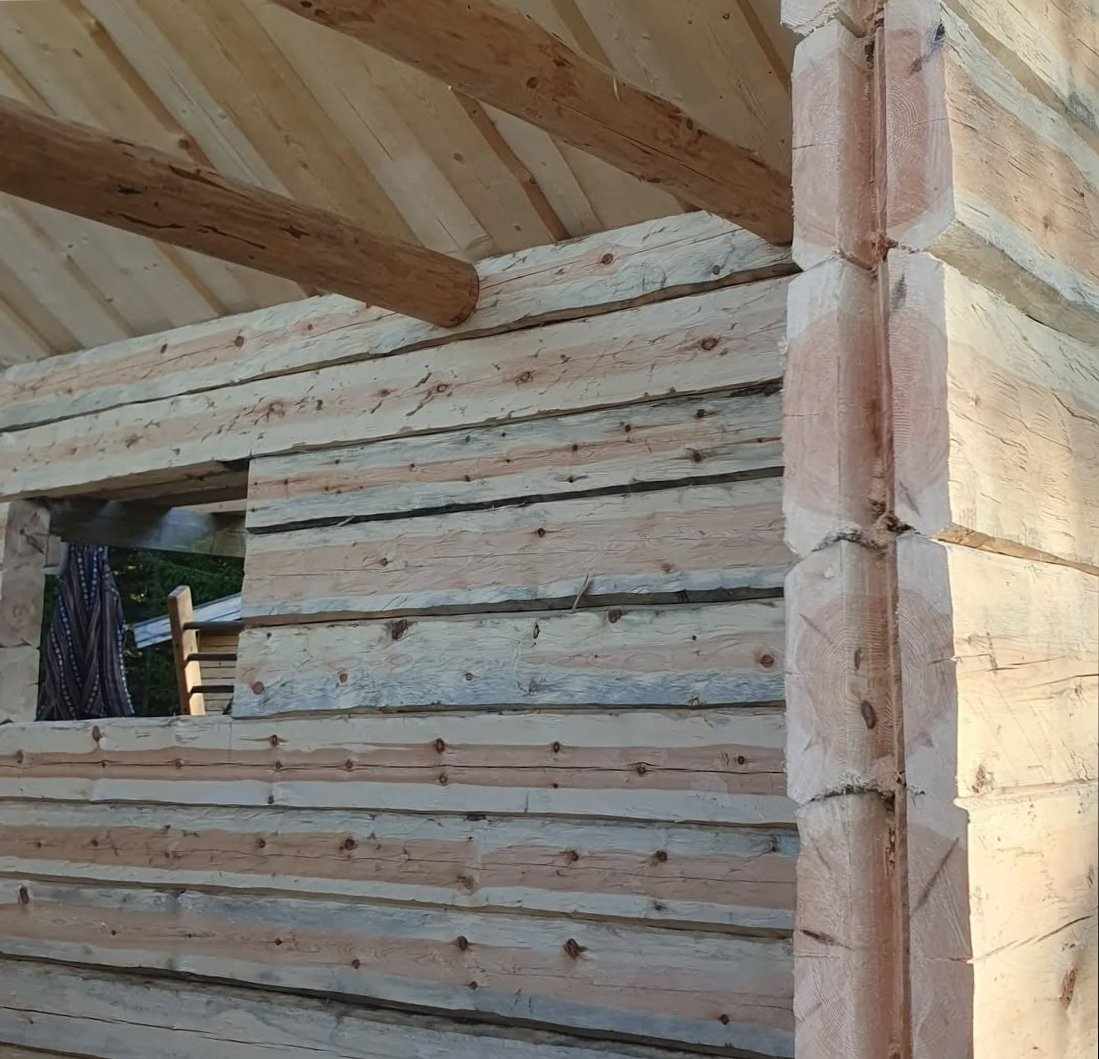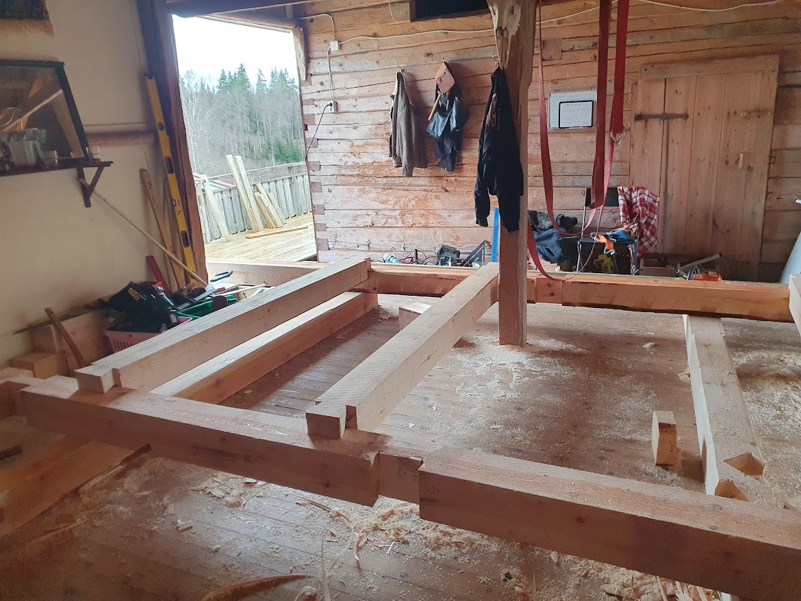 Av mig nytimrad handbilad timmerstomme på 15 kvadrat. Nedplockat och färdigställt.